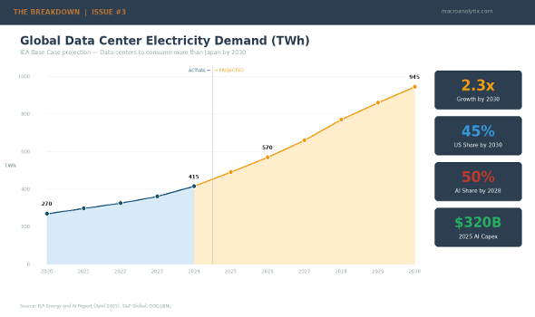 • By 2030, the US economy will consume more electricity processing data than manufacturing all energy-intensive goods combined (aluminum, steel, cement, chemicals).