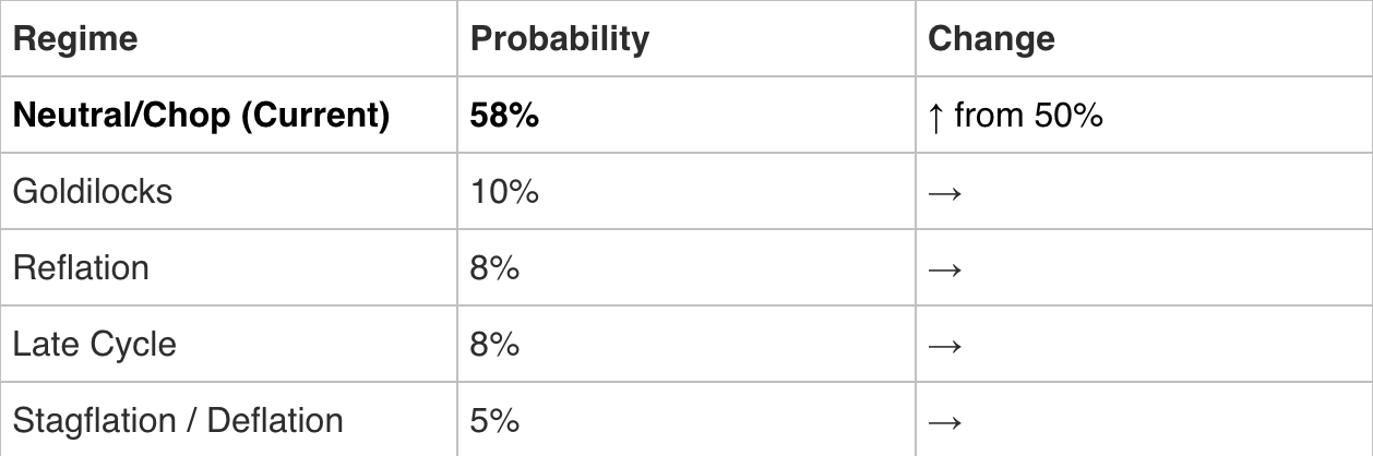 Current Regime: Neutral / Chop | Aggregate Score: +1 | Modifier: Tailwind | Conviction: Minimal