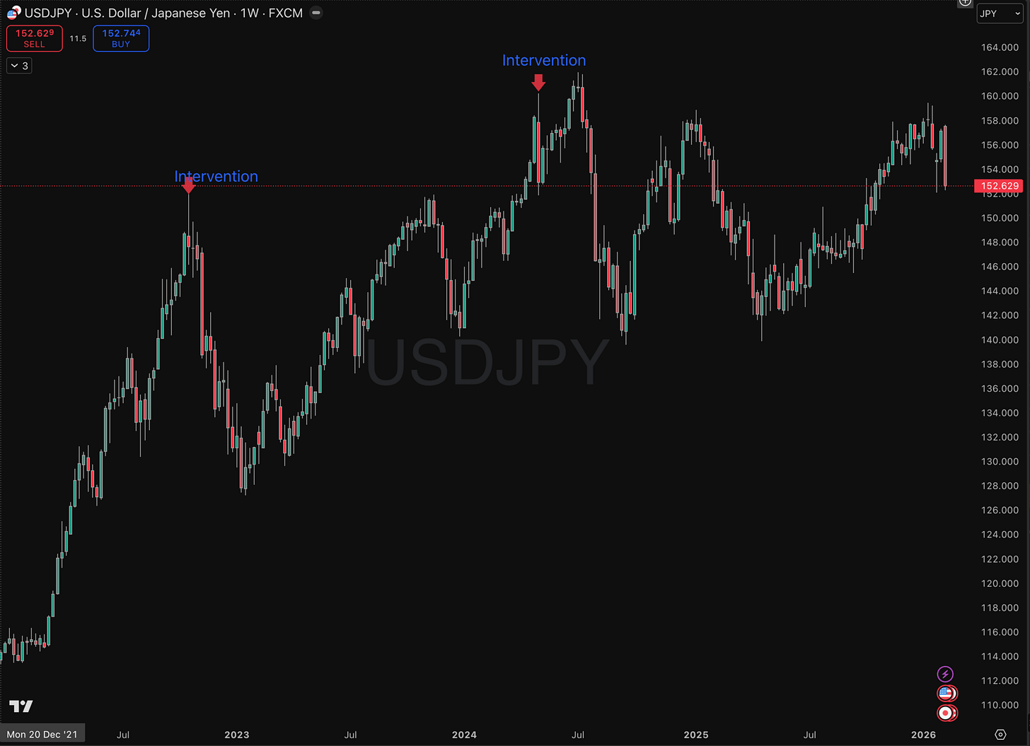 Signposts clear/cascade: USD/JPY <152 removes risk; BoJ intervention resolves painfully.