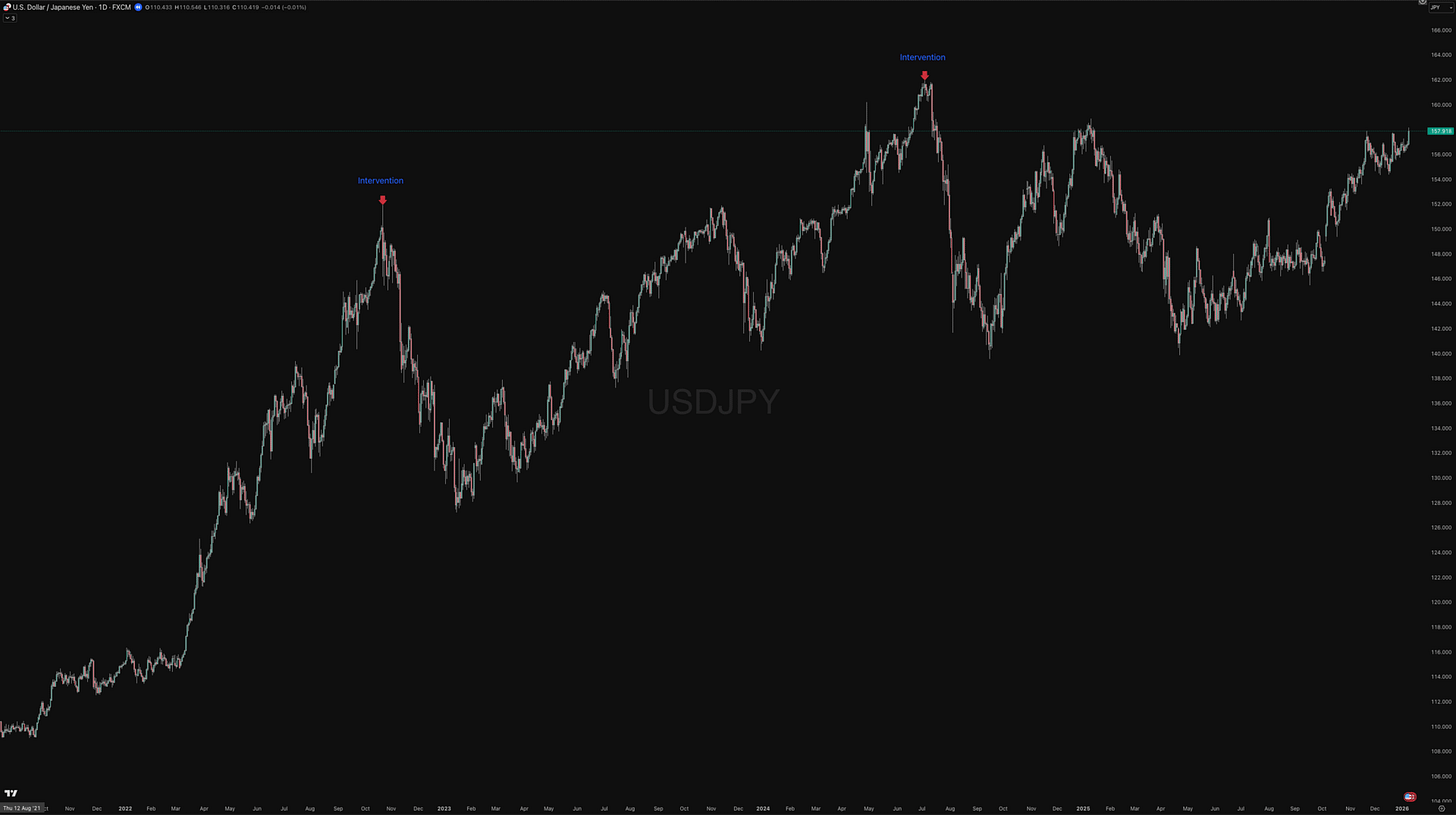Source - TradingView - USD JPY with BoJ intervention points