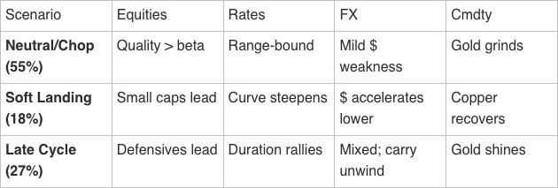 The path to Late Cycle is shorter than the path to Goldilocks. With the Fed on pause, tariff policy uncertain, and leading indicators still soft, it’s easier to construct a scenario where things deteriorate than one where things improve. That asymmetry shapes how I’m sizing positions.