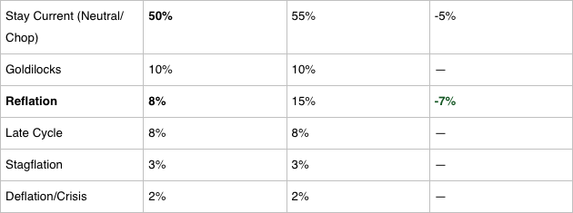 This is the headline shift. Look at the Reflation row: