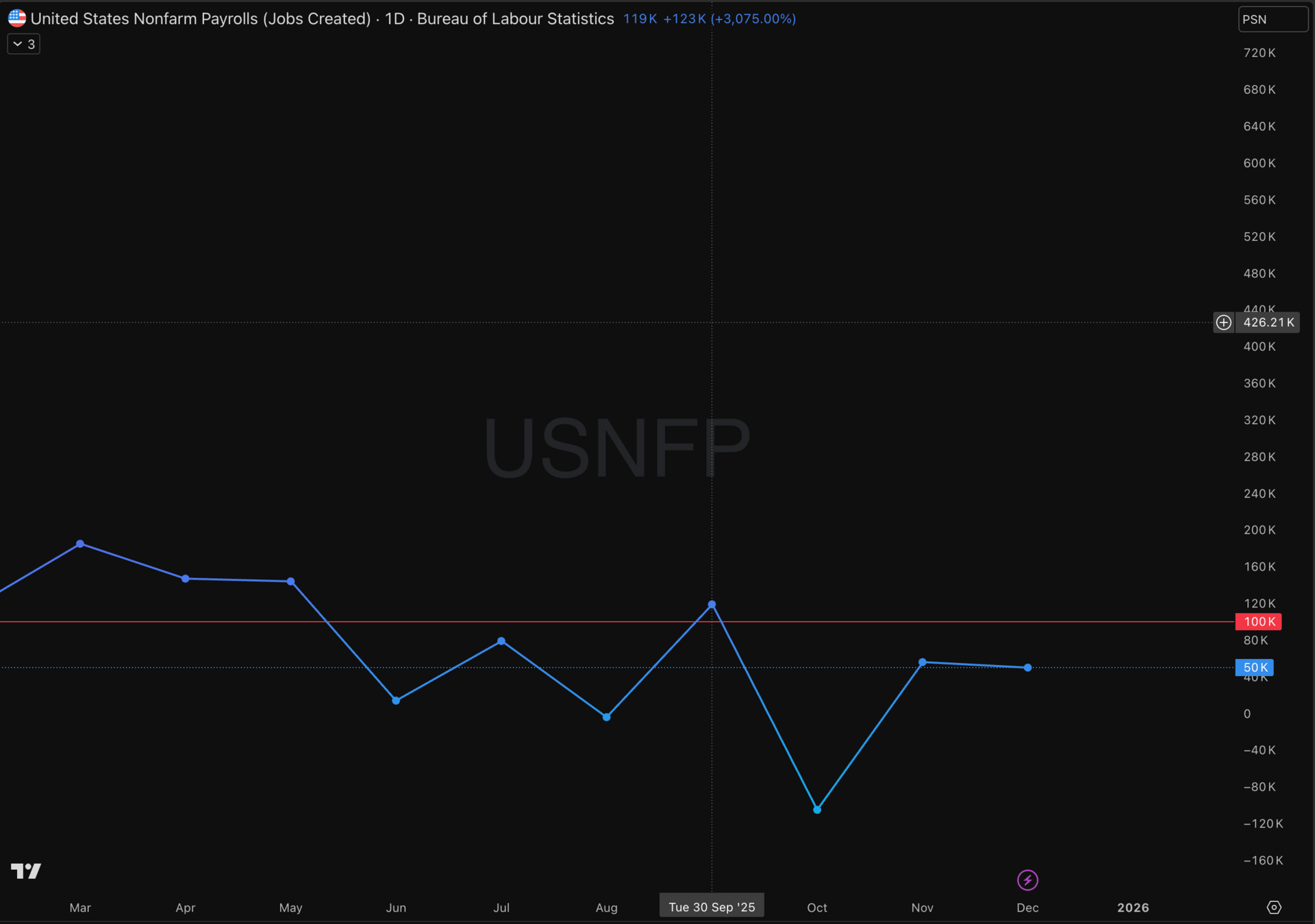 NFP trend. 52k was concerning. Below 50k would be alarming. Recovery above 100k validates soft landing.
