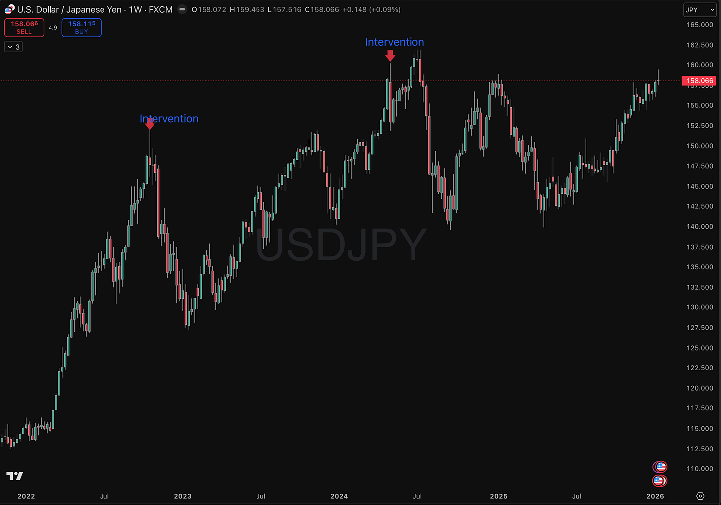 Even deeper into intervention territory now. BoJ intervened at similar levels in 2022 and 2024. Risk of sudden yen reversal and the carry unwind that would follow has increased, not decreased.