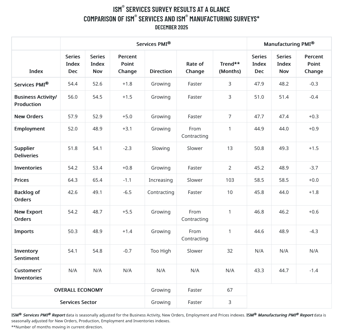 ISM New Orders minus Inventories: +2.5. Sustained positive and this one matters more than people realize.